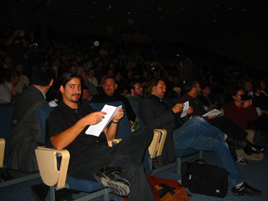 Anticipation was high as the crowd packed the foyer of Bella Center, where food and champagne was served to the 600+ attendees. At 8.30pm, the doors opened and the triple-auditorium was quickly packed. The triple-auditorium was specially set up for the evening by removing the walls between the three standard-sized auditoriums used for the 3D Festival Conference. The result was a massive auditorium with three stages and cinema screens.